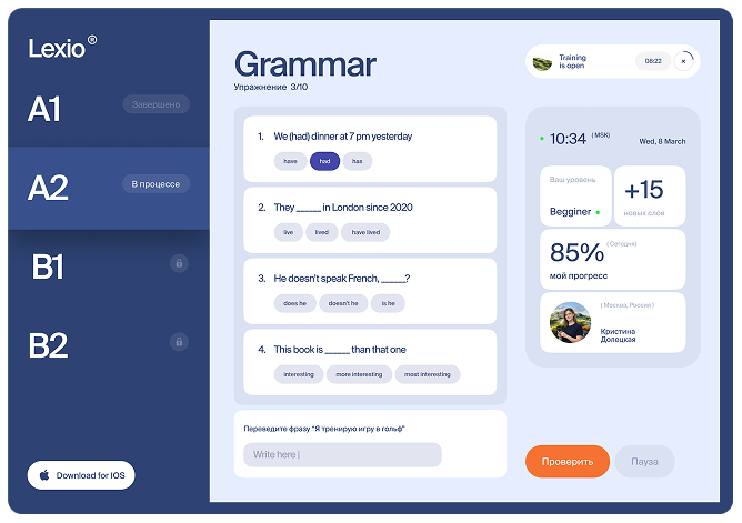 "Lexio помог мне перестать бояться созвонов с иностранными коллегами. Метод паттернов реально работает — ты просто начинаешь говорить фразами!"